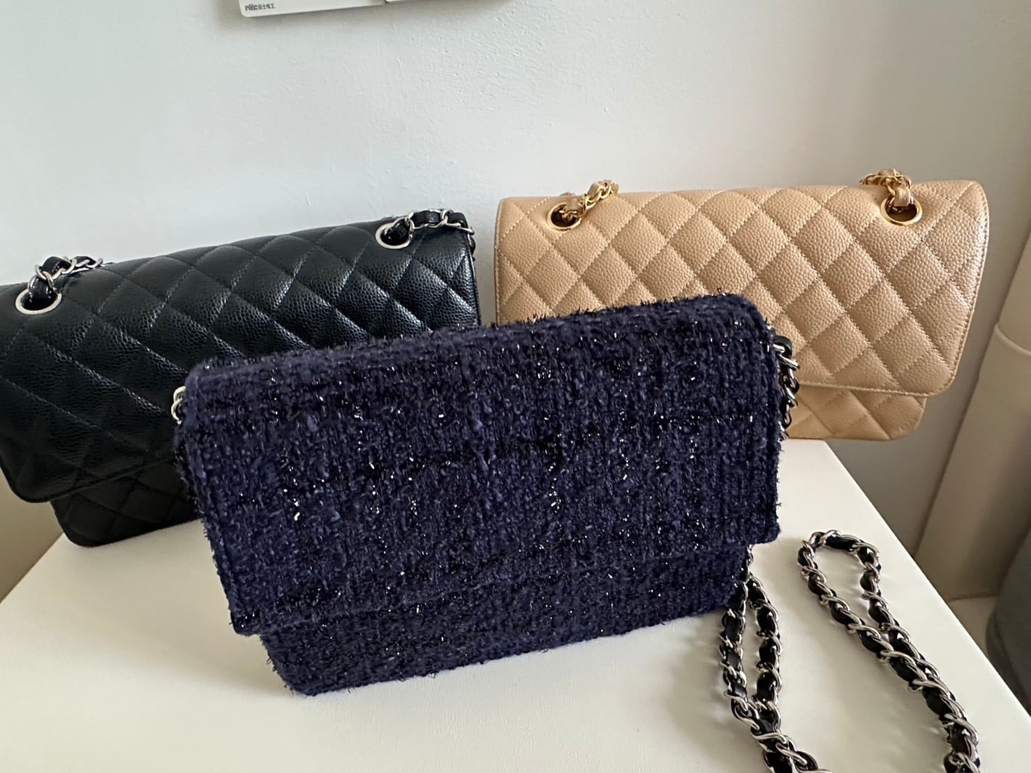 チャック付きで、お財布や携帯、鍵も入る便利な高見えツイードのチェーンバッグです。