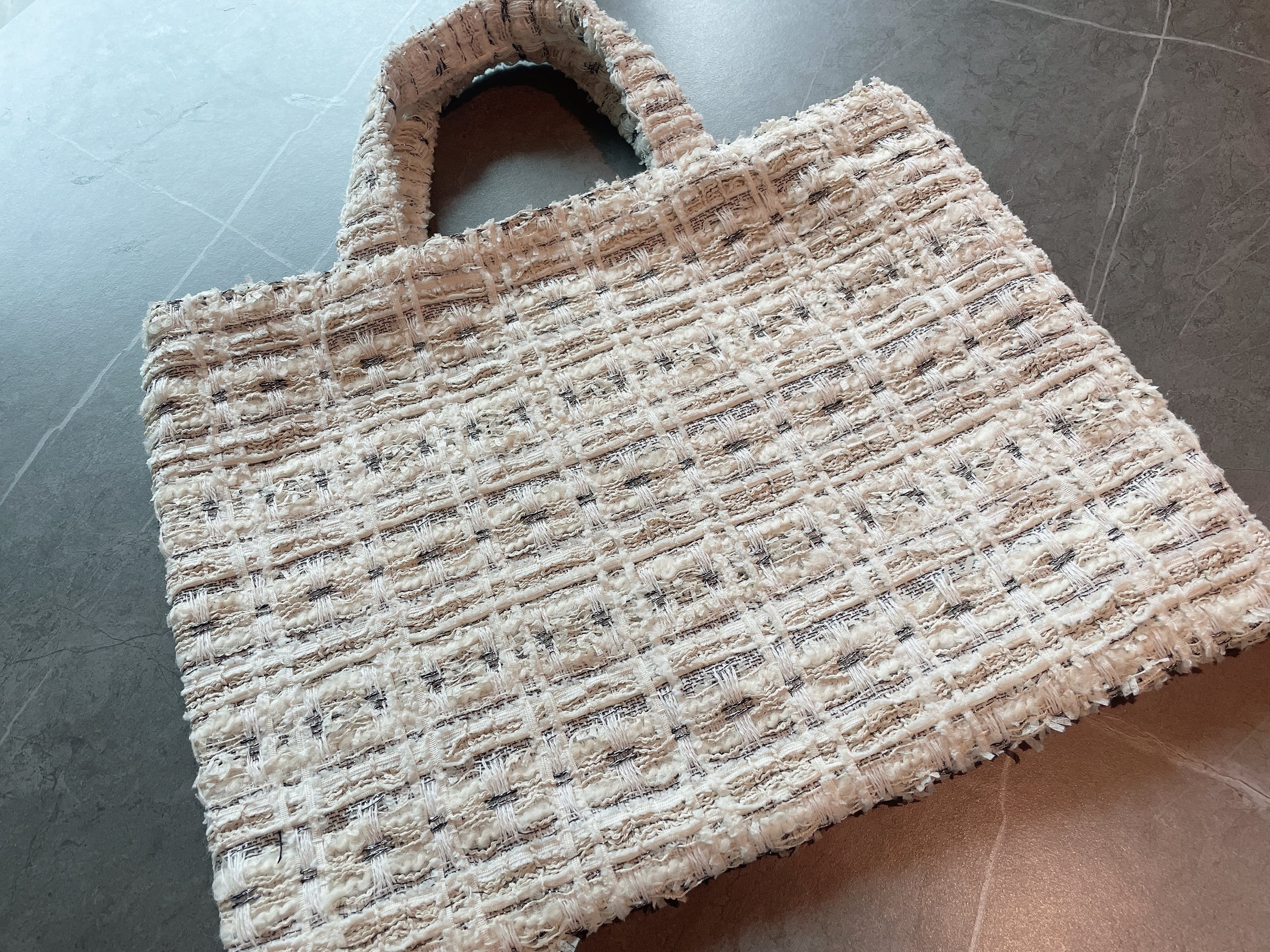ホワイトとボコボコ感のある高級ツイードで日本ではなかなか手に入らないバッグです。